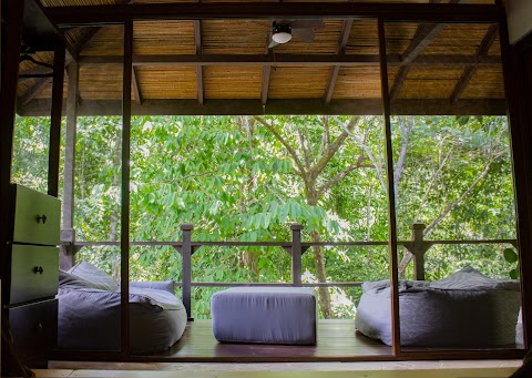 The 2 Jungle Bungalows are in close proximity to our common area, and right on the pathway to the private waterfall. Bali inspired, the interiors feature natural finishings and beautiful details. Spacious bathrooms with a shower and soaking tub looking out to the rainforest.