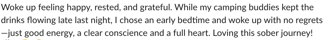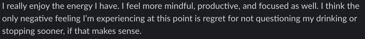 I was stuck in this loop for a long time. There never seemed to be a good time to take a break from alcohol. There was always something on the horizon that prevented me, like a wedding, vacation, or event. Life will always get in the way. The secret to change is practicing your new skills in the real world too. The only thing I regret is that I didn’t start sooner.